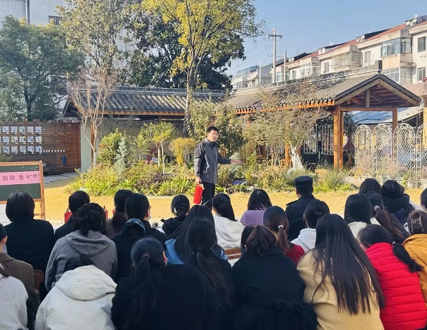 演练前,幼儿园先组织全体教职工开展消防器材使用专项培训。安全负责人结合园内实际场景,详细讲解火灾成因、初期火灾扑救方法及不同消防器材适用场景,重点针对常用干粉灭火器,拆解示范“提、拔、握、压”四步操作要领,确保教职工清晰掌握。培训中,教职工认真聆听后逐一实操:提起灭火器奔赴“着火点”,拔掉保险销、握喷管对准火焰根部,平稳按压手柄灭火,动作在反复练习中愈发规范。大家相互交流心得,及时纠正问题,筑牢“会用、敢用、善用”消防器材的安全防线,积累了扎实实战经验。