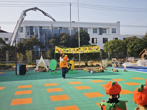 活动伊始,主持人以亲切的问候点燃现场氛围,通过回忆去年南瓜节的趣味游戏、热议心仪的南瓜美食,瞬间唤醒了大家对南瓜主题活动的热爱。随着欢快的音乐响起,孩子们与小伙伴携手加入集体舞,跟着“小手举起来!小脚踏起来!”的口令,齐声喊出“南瓜南瓜,快乐出发!”的响亮口号,用灵动的舞姿跳出对活动的满心期待。
