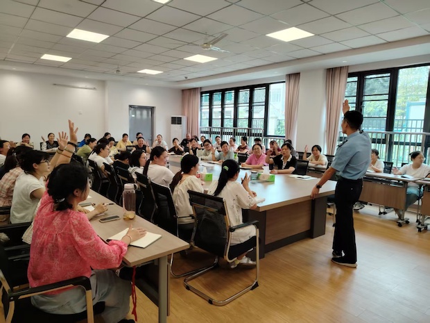 在明确安全职责后,活动进入消防安全与急救知识宣传环节。幼儿园特别邀请了消防宣传科的王老师进行专业授课。王老师以“理论 + 案例”的形式,结合近年来发生的典型校园消防安全事故案例,生动形象地向教职工讲解了火灾的成因、初期火灾的扑救方法、火灾现场的疏散逃生技巧以及消防器材的正确使用方法。此外,王老师还专门开展了海姆立克急救法培训。培训过程中,王老师通过现场演示、分步讲解的方式,详细介绍了成人、儿童及婴儿发生异物卡喉时海姆立克急救法的操作要领、动作规范和注意事项。