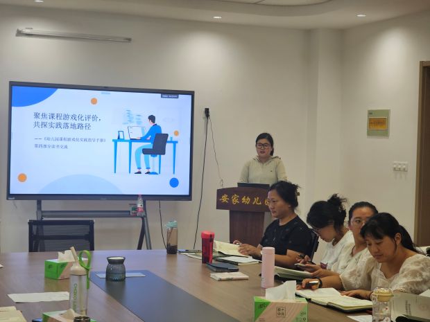 为深入推动幼儿园课程游戏化实践,提升教师课程评价与反思能力,2025年9月15日,安家中心幼儿园开展了《幼儿园课程游戏化实践指导手册》第四部分读书交流活动。本次活动以“聚焦课程游戏化评价,共探实践落地路径”为主题,全体教师积极参与,共话评价实践,共谋课程优化。