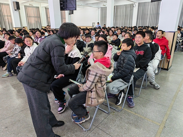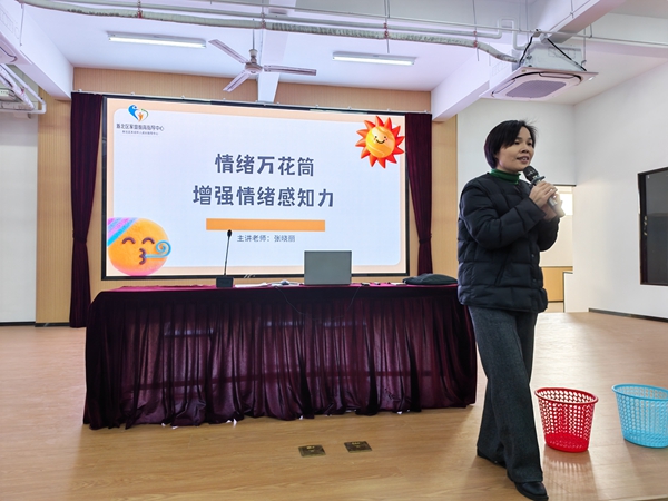 讲座在轻松有趣的“情绪猜猜看”互动游戏中拉开帷幕。张通过丰富的面部表情和肢体语言,瞬间点燃了现场气氛,让学生们直观地感受到情绪的多样性与感染力。