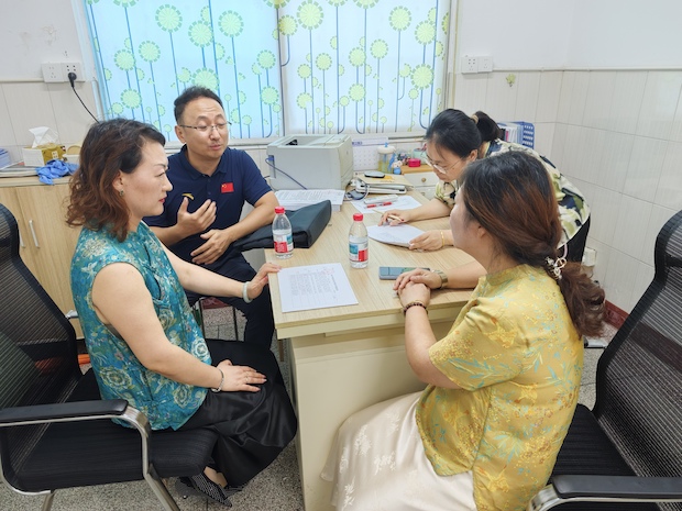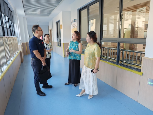 为保障2025年秋学期开学工作平稳有序推进,全面筑牢校园安全防线,8月28日下午3时,新北区教育局教师领导蒋楠与责任督学赵晓丽园长组成专项督查组,莅临安家中心幼儿园,开展秋学期开学专项督查指导工作。张小红园长及相关行政人员全程陪同检查,并详细汇报园内开学筹备情况。