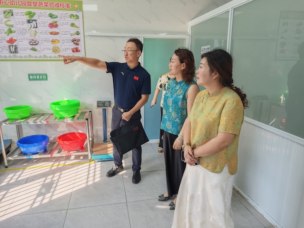 校园安全是督查工作的重中之重。在门卫室,督查组对安保设施设备进行逐项核验,包括一键报警系统、来访人员登记台账等,要求门卫工作人员严格执行“人防、物防、技防”多重安保机制,坚决守住校园安全“第一道关口”。随后,深入幼儿园食堂,围绕餐具清洗消毒流程、厨房卫生消杀记录等关键环节展开检查,强调要严格落实食品安全主体责任,确保幼儿“舌尖上的安全”。