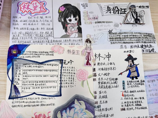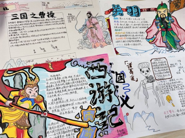 五年级的学生自选《西游记》等名著核心人物,提炼性格、事迹与台词,再用“豆包AI”生成人物分析、绘制动画风格形象图,搭配手绘版本制作图文档案卡。孙悟空的金箍棒档案卡、林黛玉的诗意手绘等作品亮点频现。同学们既深入解读了名著人物,又玩转AI工具,让经典文学在创意表达中鲜活起来。此次活动以科技赋能阅读,让五年级学子在趣味实践中收获了文学积累与创新能力的双重成长。