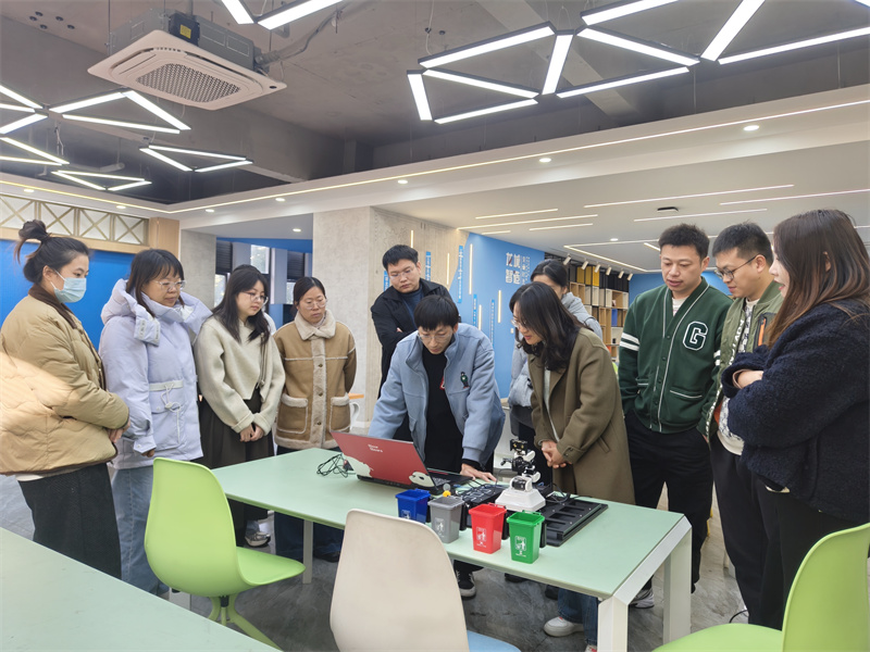 培训过程中,杨康老师详细讲解了设备的结构原理、操作流程与教学整合策略,程英老师则从信息化教学角度出发,分享了如何将人工智能设备融入日常课堂,提升教学的趣味性与实效性。参训教师们在动手实操中深入体验了设备功能,并就教学应用场景展开了热烈讨论。