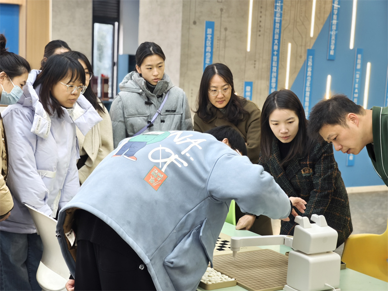 培训现场展示了两种类型的人工智能机械臂教育套件——智能对弈机器人与智能工厂机器人。两款设备均具备高度的互动性与教育性,涵盖从棋类对弈到工业模拟的多种应用场景,充分体现了人工智能在逻辑训练、动手实践与跨学科融合方面的教育价值。智能对弈机器人支持围棋、象棋、国际象棋及五子棋等多种棋类,具备高精度视觉识别与多自由度机械臂操作能力,不仅能与学生实时对弈,还内置AI教学课程与习题库,助力学生提升逻辑思维与策略规划能力。智能工厂机器人则模拟真实工业流程,具备垃圾分拣、色块识别、语音控制等功能,支持Scratch与Python编程,适合开展项目式学习与STEAM教育,激发学生的工程思维与创新意识。