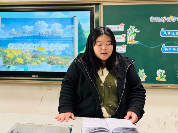 三、四年级语文教研组以周丹老师执教的课文《富饶的西沙群岛》为载体,开展“向读学写”专题教研。周老师紧扣单元“领略祖国河山美”的人文主题,以“跟着课本去旅行”视频导入,通过初读夯实基础、精读品析修辞的层层递进环节,引导学生总结“使用关键句、巧用修辞、妙用美词”三个维度的表达技巧。