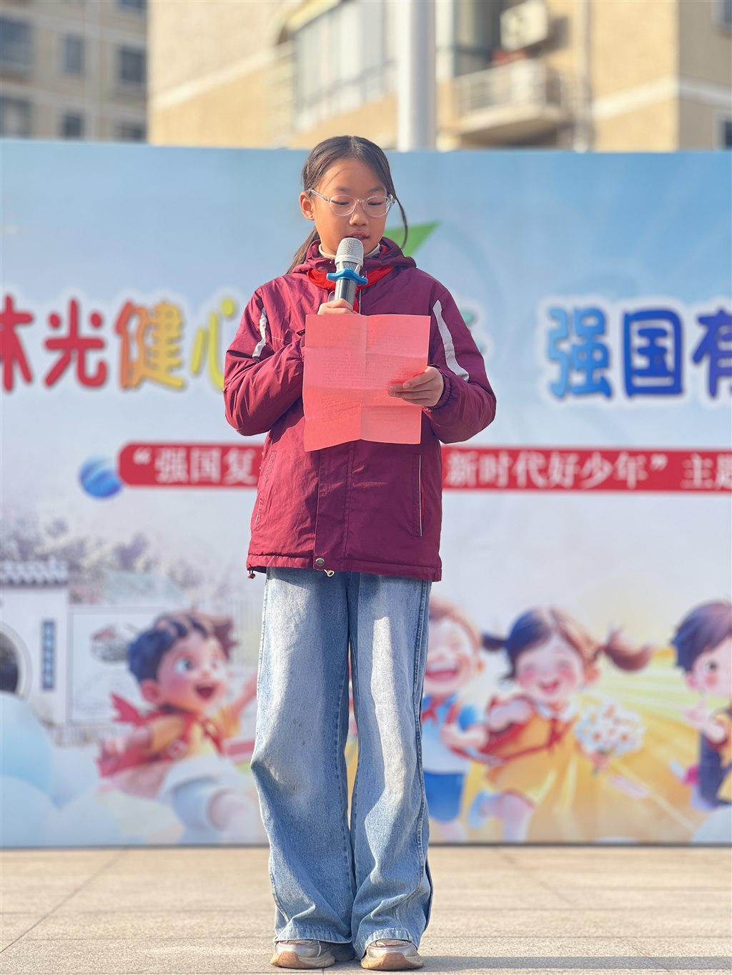 随后,活动进入主题宣讲环节。五(6)中队的黄梦萱同学作了题为《宪法如光 照亮你我》的精彩演讲,将宏大的宪法条文与同学们日常生活中的权利保护紧密结合,让抽象的法律变得具体可感。紧接着,队员们通过清脆欢快的快板表演《法治阳光伴童年》和深情真挚的歌曲演唱《宪法的光》,以艺术的形式表达了对宪法的尊崇与理解,唱响了争做“宪法小卫士”、在法治阳光下健康成长的决心。整场主题教育环节形式丰富,内容深刻,在同学们心中播撒下了尊法、学法、守法、用法的种子。