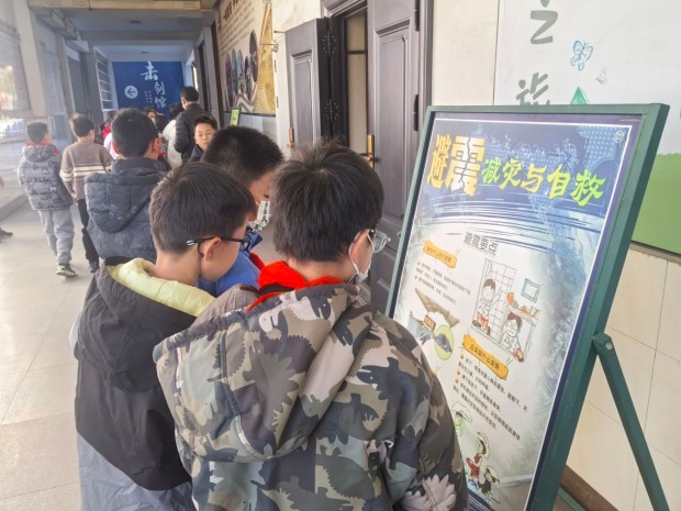 活动内容丰富、形式多样,包括“科学应对自然灾害”主题展板展出、“地震逃生”教育片观看、相关图书资料配送以及“火线逃生冲击比赛”等环节。展板内容生动详实,图文并茂地介绍了常见自然灾害的类型、成因及防范措施;教育片通过真实案例与模拟场景,使学生直观了解地震发生时的正确逃生方法;学校图书馆也同步配备了相关科普读物,为学生课后延伸学习提供了便利。