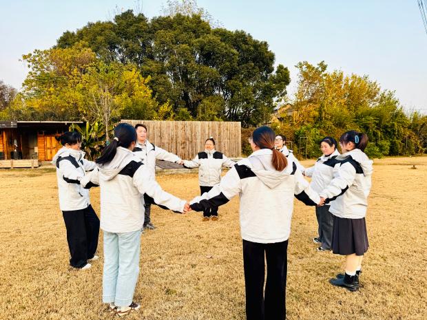 挥别秋光迎浅冬,师者同行意更浓。为强化团队凝聚力与协作意识,让教职工们在互动中增进信任、凝聚共识,形成“心往一处想,劲往一处使”的育人合力。常州市新北区百丈中心幼儿园于2025年12月1日组织全体教师前往“禾爸爸”拓展基地开展了一场集趣味游戏与创意DIY于一体的团建活动,让老师们在忙碌的工作之余放松身心、共话成长。