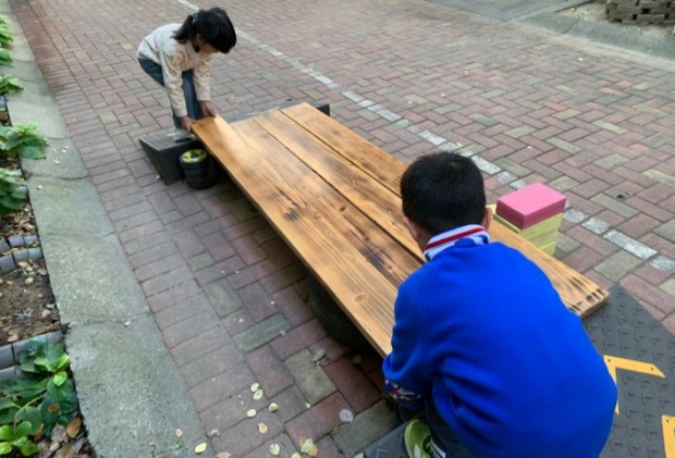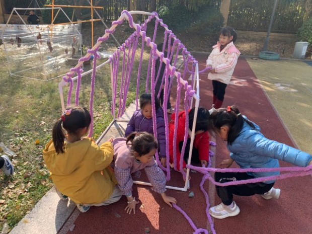 资源开发呈现出“动态化、科学化”特点,做到“资源价值取决于幼儿如何运用”,一块普通山坡,在小班是爬行训练场,到大班则演变为军事游戏阵地。薛老师帮助幼儿掌握与练习单脚跳的本领,几根绳变化出“小河”“弯道”,器材简单而具挑战变化的场地,给孩子带来无限乐趣。
