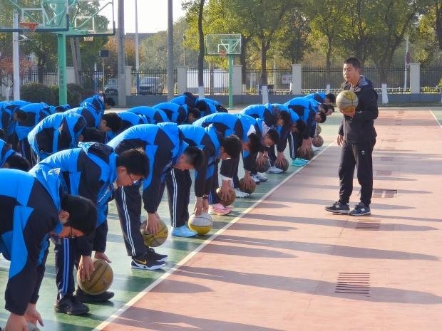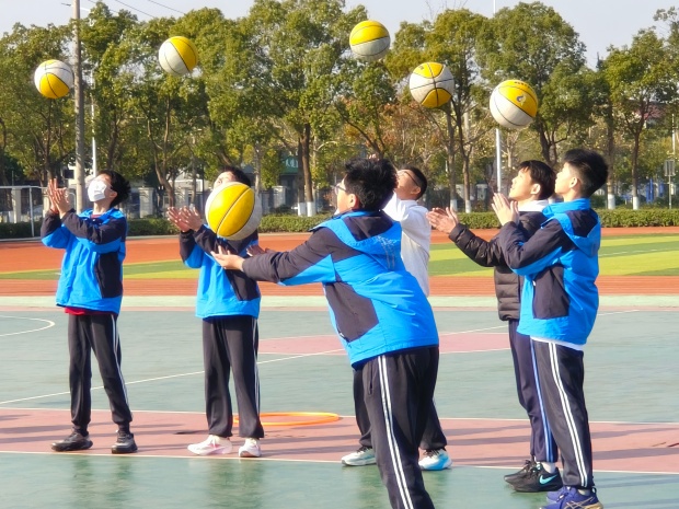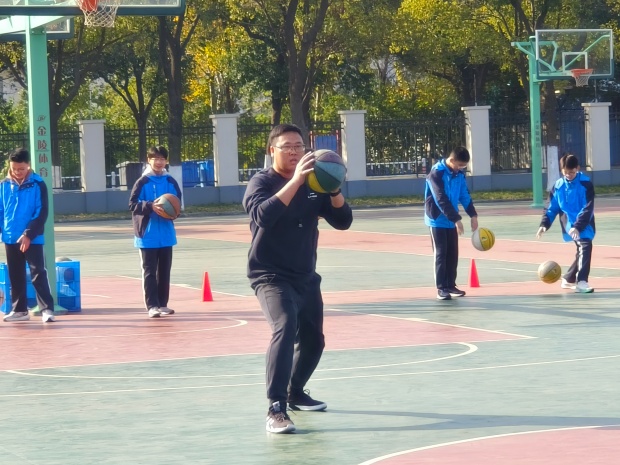 新北区赵金华优秀教师培育室的成员朱骏老师带来另一节篮球专项展示课《篮球交叉步突破多种形式练习》。朱老师创新设计 “抛接球 + 交叉步突破”“四人迎面防守突破” 等趣味练习形式,将单一技术训练转化为互动性强的小组任务。课堂中,教师通过巡回指导及时纠正学生 “走步违例”“突破时机把握不准” 等常见问题,同时融入体能训练环节,实现 “技能提升” 与 “体能发展” 的双重目标,让学生在高强度、高参与度的练习中深化对交叉步突破技术的理解,课堂氛围活跃且富有实效。