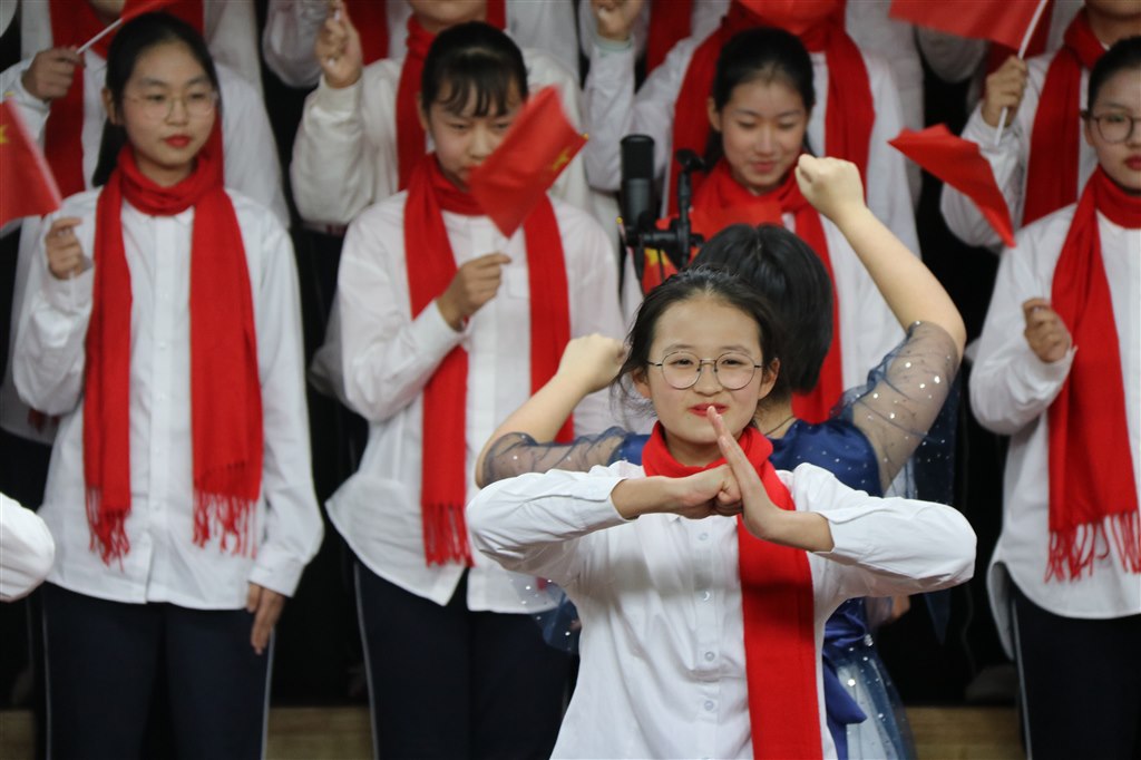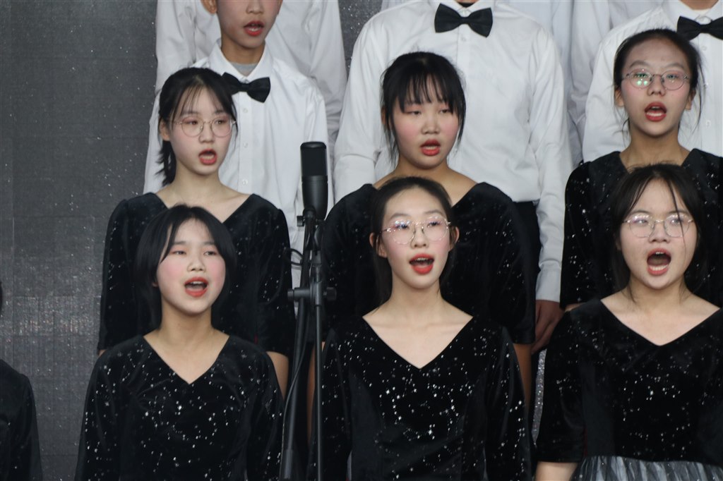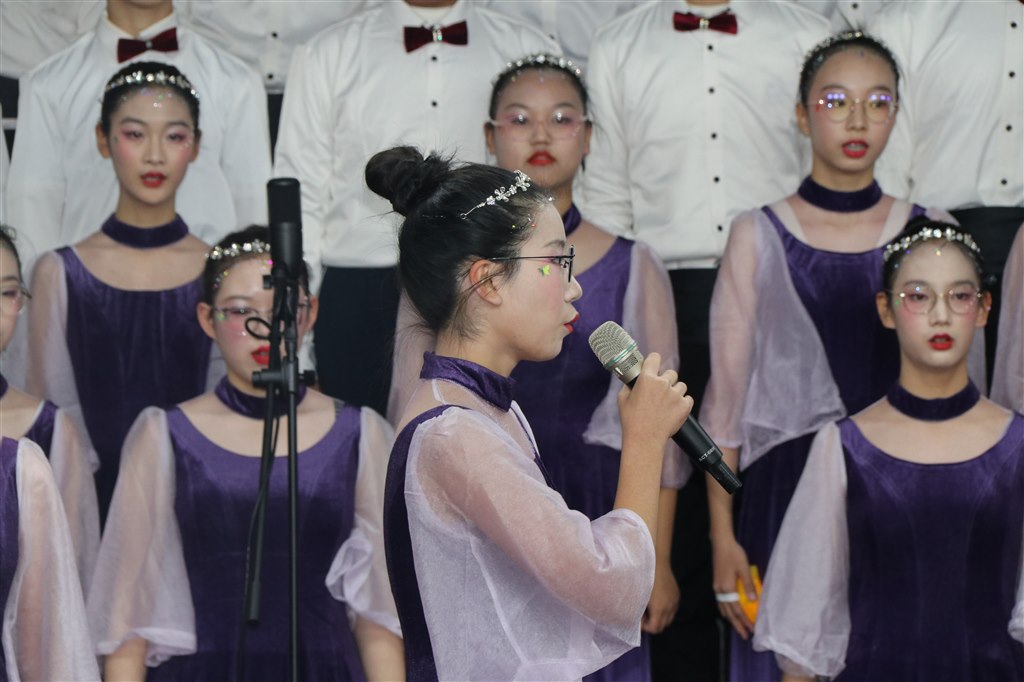 新时代的少年,既是历史的继承者,更是未来的开创者。八7班《少年中国说》、八28班《向往》、八2班《当那一天来临》的演唱,抒发了青春的爱国情怀与责任担当;八22班一曲《如愿》,以温柔坚定的声线,完成了对先辈“这盛世如您所愿”的告慰。而八12班《我们都是追梦人》、八15班《走向复兴》、八11班《打靶归来》、八13班《党旗飘扬的方向》、八6班《在灿烂的阳光下》、八10班《天耀中华》及八1班《明天会更好》,则从不同维度唱响了少年们接续奋斗、共创未来的坚定信念。