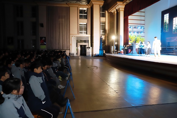演出结束后,体育馆内掌声经久不息。华罗庚艺术团的演员与主创人员还和我校学生代表进行了简短的交流互动。同学们纷纷表示,这场演出超越了普通的艺术观赏,是一次深刻的精神洗礼和爱国主义教育。高一年级的王同学感慨:“今天的话剧让我看到了历史人物鲜活立体、有血有肉的形象,更理解了先辈们将个人命运与国家需要紧密相连的崇高境界。”