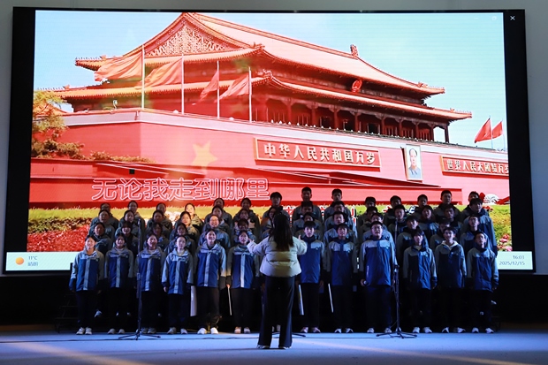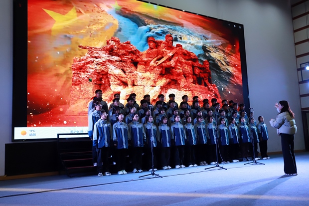 比赛现场,同学们身着整齐校服,满怀昂扬的少年意气,演唱曲目兼具思想性与艺术性:《保卫黄河》铿锵有力,尽显家国情怀;《少年中国说》朝气蓬勃,彰显青春担当;《我和我的祖国》深情款款,传递赤子之心;《夜空中最亮的星》温柔真挚,饱含美好憧憬。