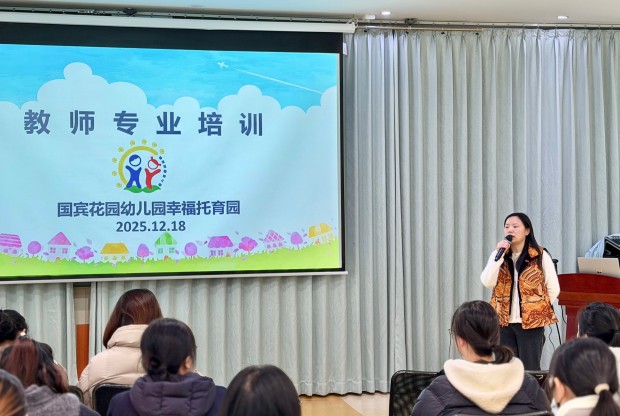 12 月 18 日中午,国宾花园幼儿园幸福托育园特邀亿童托育专家团队入园,以 “托班游戏材料解析与组织实施” 为核心开展专项培训,全体教师齐聚一堂,在沉浸式学习中夯实专业基础,解锁托班活动区与运动区教育教学新路径。