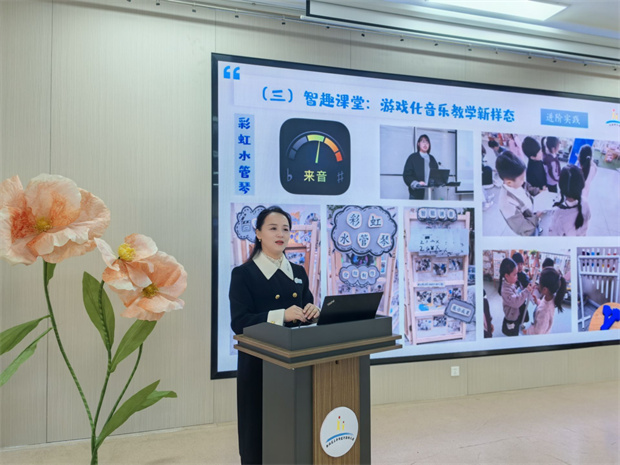 三井街道河海幼儿园园长万洁以《以数智赋能教育,以音乐润泽童年——数智化赋能幼儿园音乐教育的实践路径与案例分享》为题展开分享,围绕人工智能时代背景下幼儿园音乐教育的转型发展,从四个维度深入阐释了园所的实践探索与深度思考:河海幼儿园数智化音乐教育实践成果丰硕。在历程筑基阶段,深耕课题研究,全力夯实数智化发展根基,为后续发展筑牢基底;在实践破局阶段,以数智技术为核心驱动力,积极探索音乐课程创新路径,为幼儿教育注入全新活力;在成效迭代阶段,推动教育质量多维进阶,建立健全长效发展机制,保障教育品质稳步提升;在未来展望阶段,锚定发展方向进行系统规划,精心绘制数智化音乐教育蓝图。这一系列扎实举措,凝练出独具河海特色的教育实践经验,为幼儿的全面发展与快乐成长保驾护航。