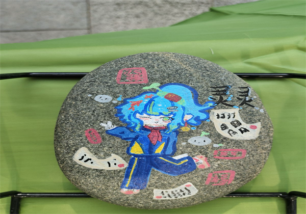 五年级「石头文创阁」:绘着水墨山水的石头摆件、“灵灵”的俏皮可爱、“战士”的英勇善战,其他石头都是学生画的“石头与溪流”,文艺范儿引得大家纷纷上手摸。