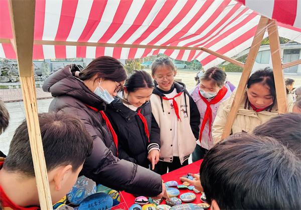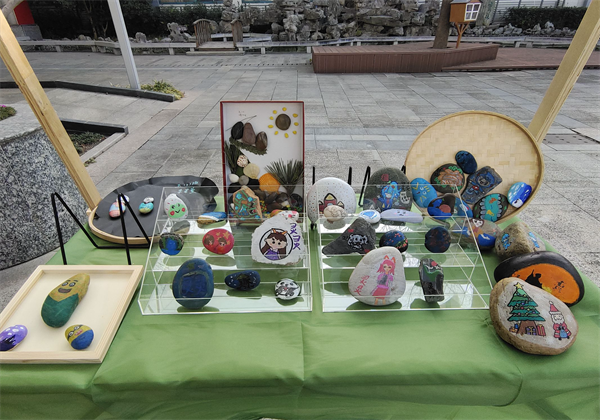 当夕阳把影子拉得长长的,摊位慢慢收了起来,石头们被小心地装进盒子里,但那些藏在石子里的东西:一二年级的童趣、三四年级的探索、五六年级的创意,早已经漫出了摊位,落在了校园的风里。就像一位老师说的:“我们本是想让孩子们‘玩石头’,没想到他们把成长的温度,都揉进了这小小的石子里。”