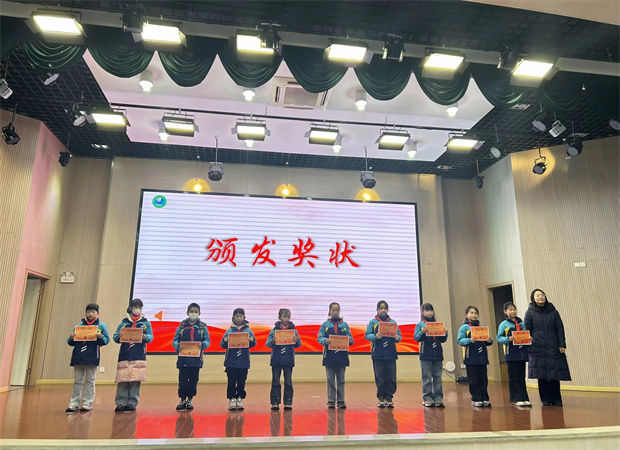随后,刘校长、谢校长与杨主任共同为在“灵溪节”中表现突出的班级与个人颁奖。欢快的乐曲声中,获奖代表依次登台。他们手中接过的不仅是证书,更是团队协作、探索精神与创造力的见证。台下掌声如潮,欢呼涌动,集体的自豪与成长的喜悦在空气中盈盈绽放。