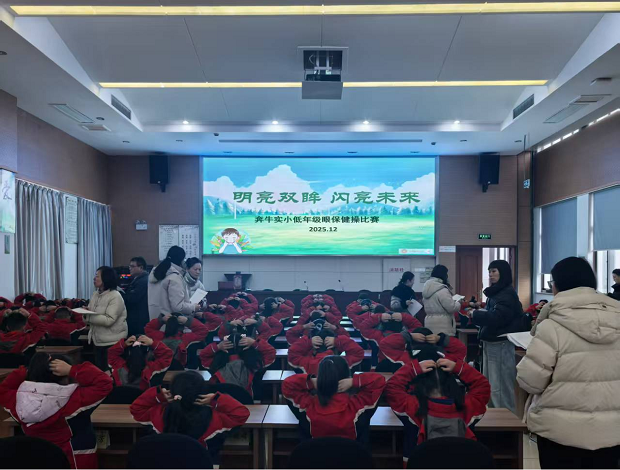 “轻闭双眼,身体坐正……”伴随着舒缓的眼保健操音乐,孩子们伸出稚嫩的小手,认真找准穴位,有节奏地按压揉捻。12月24日下午,奔牛实验小学校园里举行了一场特殊的比赛--“明亮双眸,闪亮未来”一二年级眼保健操比赛。这场别开生面的赛事,将日常保健与趣味竞技巧妙融合,在孩子们心中播下了爱护眼睛的种子。