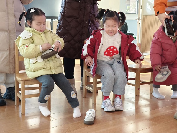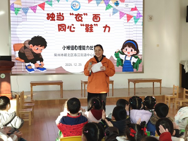 为助力3-4岁幼儿把握生活自理能力发展关键期,培养“自己的事情自己做”的责任意识,12月25日下午,春幼音体室内,小班组“独当‘衣’面 同心‘鞋’力”自理能力比赛精彩上演。