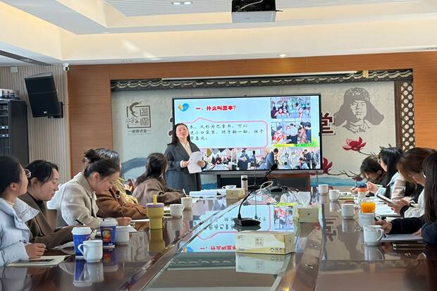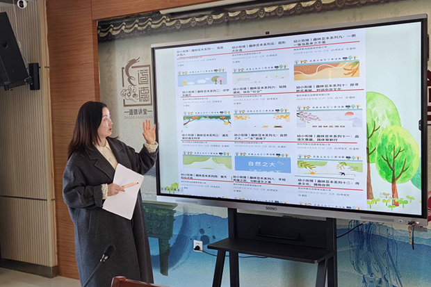 薛家实验小学的顾丽娜老师开展《童心与豆豆本的遇见》专题讲座,分享学校幼小衔接 “真趣课程” 的核心子课程 ——“豆豆本” 课程。该课程源于无患子树观察记录,现已覆盖社交、课间、劳动、学科等多场景,助力孩子提升综合能力。顾老师重点介绍《雪孩子》跨学科融合案例,结合语文课文,联动音乐、科学、德育等学科开展实践,最终以“有声豆本”呈现成果。讲座中,一个个真实的案例让在场教师深刻感受到“豆豆本”在幼小衔接中的独特价值。