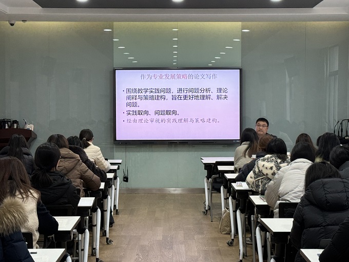 为提升教师教研写作能力,促进专业成长向深处、实处迈进,12月23日下午,我校成功举办“专业赋能 笔耕致远——新北区初中英语培育室暨龙城初级中学‘一营三室’”专题讲座活动。活动由教师发展处副主任盛莉莉主持,新北区初中英语培育室全体成员、校英语教研组全体教师及“一营三室”成员共同参与。