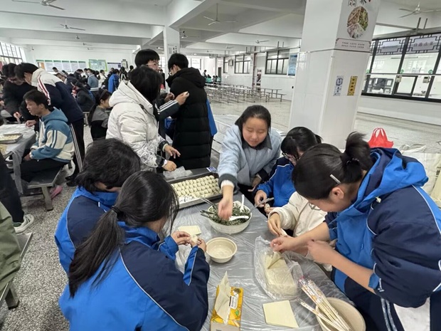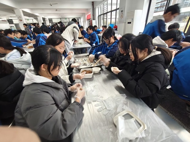 活动现场,食堂餐厅成为巨大的操作台,老师们褪去平日的严肃,家长们暂放工作的繁忙,孩子们收起学业的紧张,三方围坐,笑语盈盈。一只只形态各异的饺子从生疏到精巧,排列如元宝,也排列出代际间无声的传承与默契。“看着孩子专注的样子,就像看到了小时候的自己。”一位母亲感慨。许多家长表示,在初三繁忙的学习阶段,这样的活动不仅缓解了孩子的压力,更让家庭与学校的力量紧紧凝聚。热气腾腾的饺子出锅时,同学们首先捧给父母和老师。品尝着共同的劳动成果,暖意从胃里弥漫到心里。