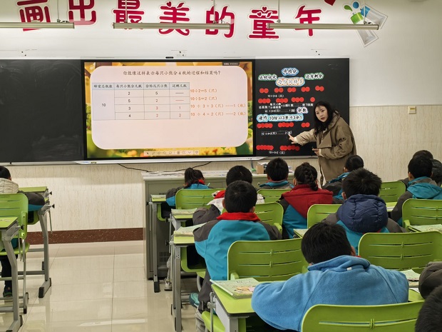 为深化城乡教育教学交流,促进优质教育资源共享,近日,吕墅小学再次迎来了一场别开生面的城乡牵手教研活动。本次活动聚焦苏教版二年级数学新教材《认识有余数的除法》,由吴汝敏老师精彩执教,丁志根校长领衔评课,全校数学教师参与研讨,在思维的碰撞与交流中,为小学数学课堂教学注入了新活力。