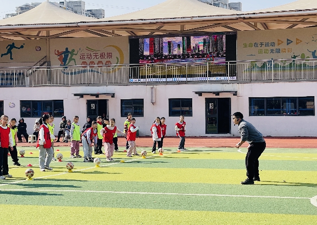 绿茵场上,步伐如风。12月25日,我校操场上一场关于“变向与突破”的体能训练课正在激烈展开。我校陆业涌老师带来的《足球变向跑位中的爆发力与位移速度训练》课程,为五年级学生开启了一场速度与智慧的挑战。课程从一段精彩的比赛视频切入,瞬间点燃了学生的求知欲。在教师清晰有力的示范下,学生们专注练习“屈髋降重心、蹬地转体”的核心技术。随后的“体能闯关游戏”更是精彩纷呈:“喊号捉影子”考验极限反应,“喊号抢球”锤炼瞬间爆发,“极速拍档”则融合了变向与协作。最终,在真实的2V2、4V4对抗赛中,学生们将所学技术充分运用,一次次灵活变向、摆脱防守、果断射门,展现出良好的空间意识和团队默契。这堂课,不仅是体能的强化,更是足球智慧与团队精神的生动熔铸。