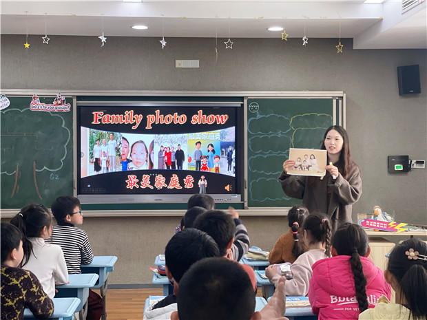 恽丽玲老师展示的AI赋能英语课,以技术与教学的深度融合重构课堂形态,将VR、AI示范对话等技术无缝嵌入六环节教学流程,实现了从“知识传授”到“智慧育人”的升级。常规积累与导入环节亮点突出,在自然拼读字母操夯实基础的同时,借助VR技术创设沉浸式“家庭场景”,让学生仿佛置身真实家庭氛围中,用“Who’s she/he?”互动时更具代入感,高效激活旧知的同时,打破了传统语境创设的时空限制。新知呈现环节,动画资源与AI技术相辅相成,“匹配+猜测”活动搭配结对练习、角色扮演,让核心句型学习在互动中自然深化。拓展输出环节更显技术赋能优势,学生制作“家庭树”后,AI示范对话精准梳理语言结构,为个性化表达提供科学支架,既帮助学生实现语言知识的真实迁移,又让热爱家庭的情感目标在技术加持下自然落地。整堂课中,AI技术并非简单叠加,而是成为情境创设的助手、语言训练的支架、反馈评价的工具,与教学环节深度契合,既保持了“输入—内化—输出”的教学逻辑,又通过技术赋能提升了课堂效率与体验,彰显了“技术服务教学”的核心要义。