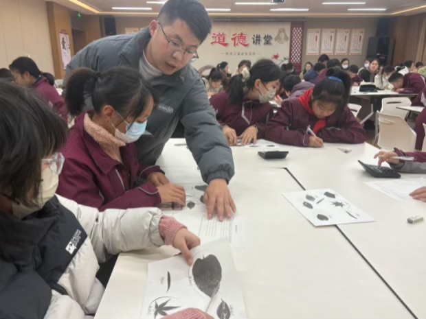 六年级王鑫老师的《树叶中的比》一课,王老师引导学生围绕“树叶长与宽的比值”展开探究。学生分组测量、计算、记录,课堂中还融入针叶树科普知识,实现数学与自然观察的巧妙结合。通过对比同种与不同种类树叶的比值,学生逐步发现规律。课堂最后,王老师借由树叶的独特性,自然引出对每个生命个体独特价值的思考,将课堂主题升华,赋予跨学科学习逻辑的深度与情感的温度。