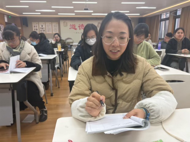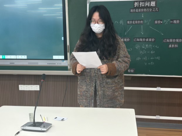 课堂教学结束后,赵湘老师对两节课进行了理论分析。她指出《树叶中的比》与《折扣问题》虽课型不同,但均立足学生认知特点,以知识应用为核心,遵循“生活—数学—生活”逻辑,助力核心素养提升。两节课均通过生活化导入唤醒经验,以问题驱动探究,再拓展回归生活应用。差异在于《树叶中的比》作为综合实践课,侧重动手实操与科学探究,整合多类知识培养综合探究能力;《折扣问题》作为实用应用题课,聚焦思维建模与解题方法,依托百分数知识提升实际解题能力。二者互补共生,既深化了比与百分数的知识应用,又分别培养了不同关键能力,让学生感受数学与自然、生活的紧密联系,激发用数学服务生活的兴趣,为后续学习奠定基础。