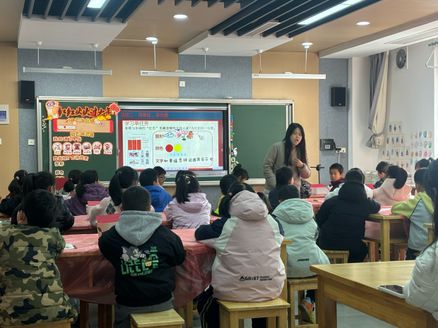巢杨希老师执教本单元起始课。她以学校“弘雅”艺术节为背景,创设了“策划‘吉祥马年’主题展区”的核心任务。课堂通过说说演演、豆包小考官等活动引导学生探究年文化,还使用学习单小组自学的形式,理解了春联、年画与“中国红”的吉祥寓意,并亲手完成了迷你春联与马年年画的创作。本课着重于文化感知与内涵理解,为学生奠定了扎实的情感与认知基础,激发了他们对传统年俗的浓厚兴趣。