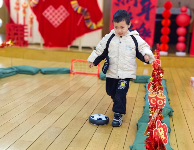 “体能挑战营”以“龙、马、虎”为精神意象,将速度、力量与勇气融入八大趣味关卡。孩子们在“策马奔腾”中骑竹马驰骋;“小龙攀云梯”挑战向上的高度;“马儿投福”与“飞虎射门”投掷出精准的弧线;“小马冲冲冲”体验骑行竞速;“小虎运年货”传递平衡的智慧;“小马快快跑”闪动敏捷的身影;“翻滚吧,小龙马”则在翻滚中释放身体的勇气。每一次尝试都唤醒潜能,每一次挑战都点燃活力,让孩子们在运动中绽放童年的蓬勃生命力。