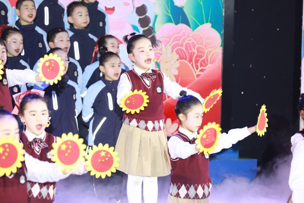 文艺汇演在暖场器乐演奏《加勒比海盗》的激昂旋律中拉开序幕,瞬间点燃全场热情。随后,在“班班唱”比赛中夺魁的班级轮番登场,用歌声传递真挚情感。一(6)班的《祖国祖国我们爱你》,以纯真童声诉说对祖国的热爱;二(6)班的《党是太阳我是花》,将党恩滋养与成长感恩融入旋律;三(3)班的《闪耀明天》,满是对新一年的明亮期待;四(2)班《亲爱的旅人啊》,用温柔旋律唱着成长路上的陪伴;五(3)班的《骁》则尽显国风豪情,展现少年追光的飒爽风采;六(7)班的《如愿》更是将个人成长与家国历史相连,诠释传承的力量。