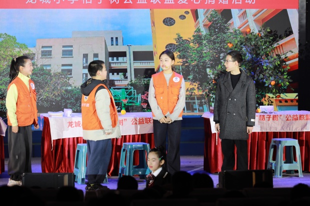 除了班级合唱,三独比赛优秀选手带来的才艺展示同样精彩。舞蹈节目串烧活力满满,用轻快舞姿展现童年的蓬勃朝气;器乐演奏《彩云追月》灵动悠扬,演绎青春期的探索与激情;歌曲串烧涵盖多样曲风,碰撞出别样艺术魅力。老师们也化身“才艺达人”登台献艺,褪去教案与粉笔的他们活力十足,用精彩表演点燃全场,更送上真挚的新年祝福,让现场暖意融融。公益类课本剧《橘子树下的暖阳》则在诗意场景中,传递平凡人的担当与温情,引发全场共鸣。