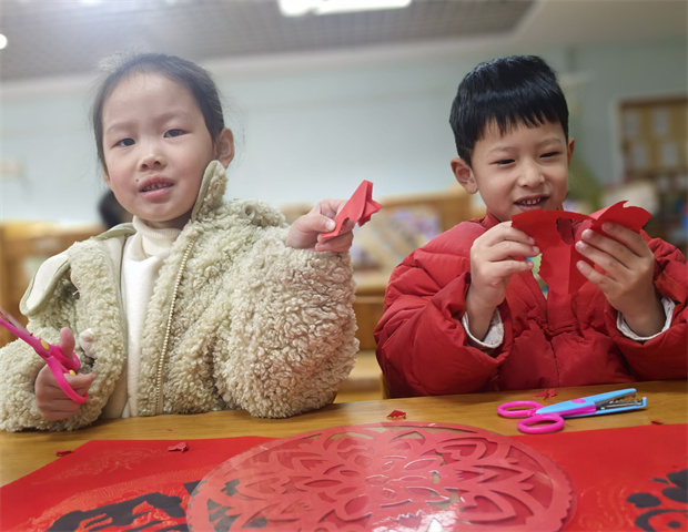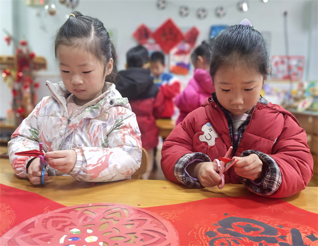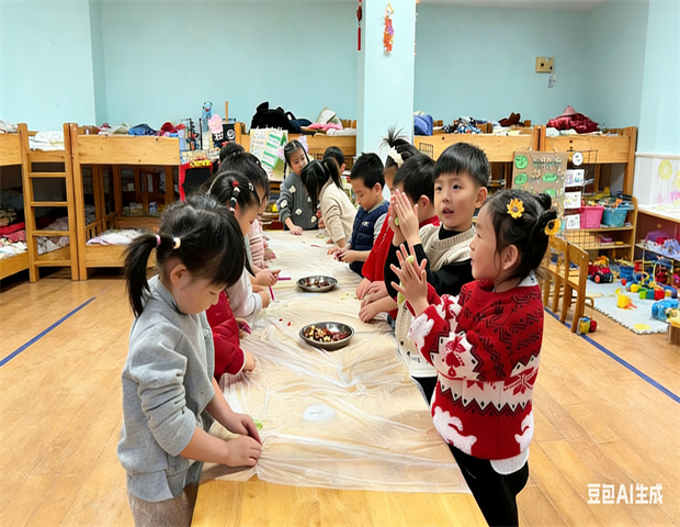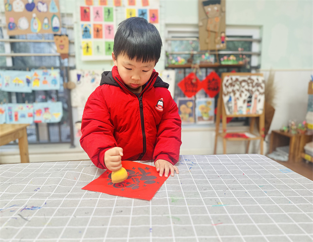 上午的幼儿园弥漫着浓浓的麦香与年味,“舌尖上的新年 —— 蒸馒头” 活动在各班教室温馨开启。家长助教们提前备好面粉、酵母、蔬菜汁等食材,与老师们一同指导孩子们揉面团、搓圆球、捏造型。孩子们稚嫩的小手在面团上尽情创作,面团在小手的揉搓下逐渐成型,承载着孩子们对新年的美好期盼。下午,“班本化创意工坊”正式拉开帷幕,七个班级化身七大“福地”,分别开展了窗花拓印、糖葫芦制作、新年树装饰、剪窗花、红梅黏土创作、摇摇小马手工、福字拓印七大特色活动,让孩子们在动手操作中感受传统文化的韵味。