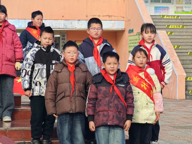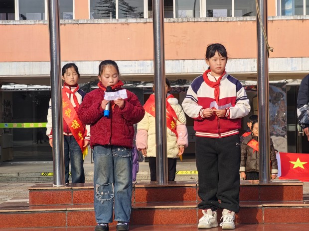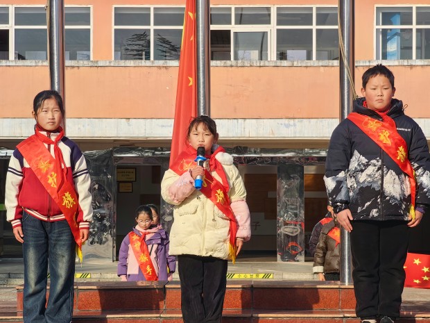 在仪式最后,主持人宣布了本周获得流动红旗的班级,他们是三1班、三2班、四1班、四2班、五2班、六1班、六2班、六3班,各班班长到升旗台前领取流动红旗。
