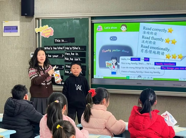 为精准把握小学英语复习课的教学规律,提升复习课课堂实效,活动前期,全体英语教师率先围绕《Project 2 A family poster》复习课开展专题理论学习,重点研讨复习课的目标定位、内容整合、活动设计等核心教学策略,系统梳理复习课“夯实基础、查漏补缺、提升运用”的核心要义,为后续的课堂实践与研讨交流筑牢理论根基。在此基础上,全体教师以《Project 2 A family poster》为载体,聚焦小学英语复习研讨课教学开展同课异构教研,在隆冬时节的教研交流中探寻复习课高效教学新路径。