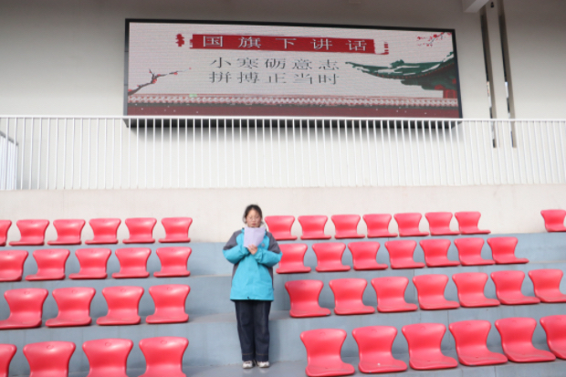 七(6)班学生代表发表了题为《小寒砺意志、拼搏正当时》的国旗下演讲。演讲从小寒节气入手,将自然气候与成长历程巧妙联结,阐释了“严寒磨砺意志,拼搏点亮青春”的深刻内涵。“古人云:宝剑锋从磨砺出,梅花香自苦寒来。”演讲者引用经典,鼓励同学们以梅花般的坚韧直面学习与生活中的挑战。她强调,信念是支撑前行的火把,拼搏是青春最亮的底色,号召全体同学珍惜时光,在知识的求索中、在体魄的锻炼中、在每一次克服惰性的坚持中,积蓄力量,静待春来。