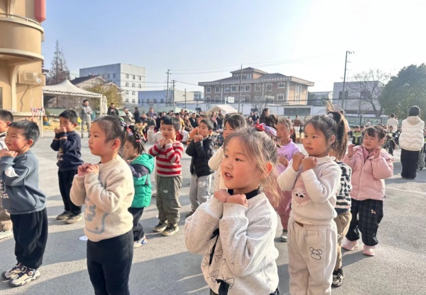 伴随着欢快的节奏,孩子们的脸庞洋溢着满满的笑容,动作有力,动感的音乐配上整齐的舞蹈动作,成为了操场上一道美丽的风景线。