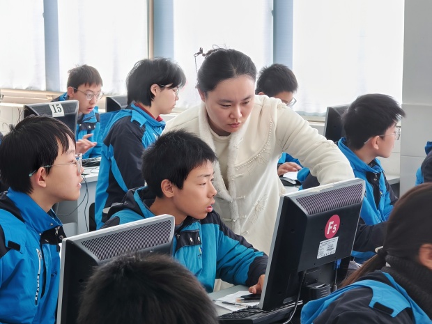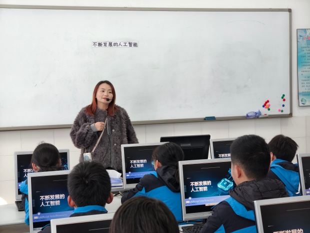罗溪中学侯冬老师执教《不断发展的人工智能》一课。本课以校庆为情境,紧扣“跨学科项目式学习”主题,将AI知识与校园文化设计结合,既落实学科素养,又贴近学生生活。导入自然勾连学生经验,发展历程探究活动兼顾知识梳理与思维参与,“智能周边”设计任务聚焦“懂人”的AI价值,渗透人文与创新意识。