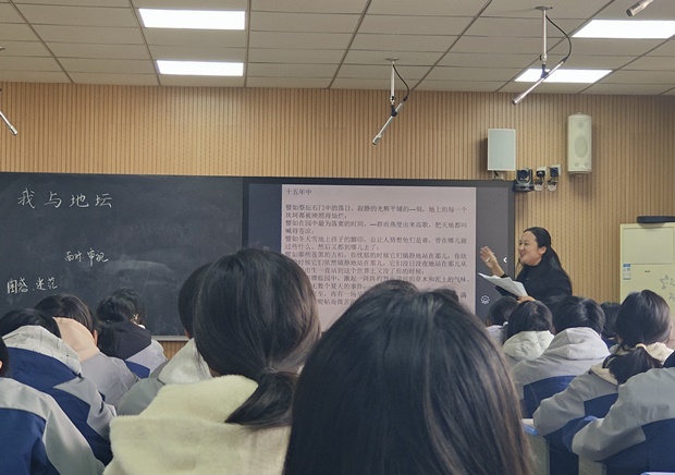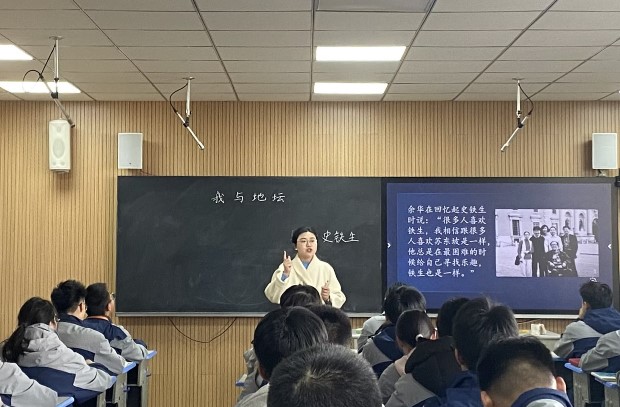 龙城高中朱菁老师、洛阳高中沈珠月老师分别在高一(3)班、高一(9)班教授《我与地坛》。课堂紧扣史铁生的生命历程与地坛景致的深层联结,通过梳理心境变化轨迹、品读景物描写、解读生死哲思等任务,引导学生在文本细读中汲取直面苦难、热爱生命的力量。