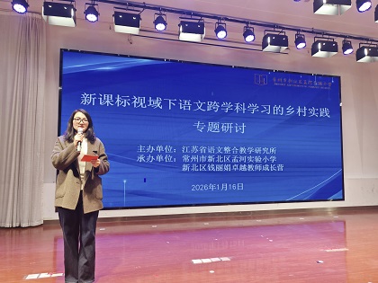 冬日暖阳,万物含章。2026年1月16日上午,“新课标视域下语文跨学科学习的乡村实践”专题研讨活动在孟河实验小学温情启幕。本次活动由江苏省语文整合教学研究所主办,常州市新北区孟河实验小学承办。