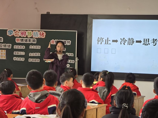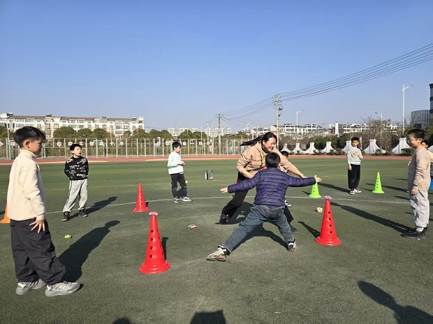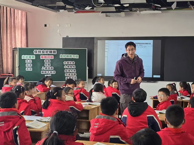 巢泽老师带领三年级学生开展“反应与灵敏”练习,通过追逐、躲闪等趣味游戏,让孩子们在欢乐的氛围中训练了身体协调性,提升了反应速度;李莉老师带领五年级学生完成“反应与灵敏”进阶练习,通过分组竞赛和障碍挑战,进一步提高了学生的灵敏素质与团队协作能力;石敏鑫老师带来《学会调节情绪》一课,借助互动体验和情景模拟,帮助学生掌握了实用的情绪管理小技巧;胡昱老师带来《保持良好睡眠》一课,用生动的动画和真实案例引导学生认识睡眠的重要性,并学会科学的睡眠方法。