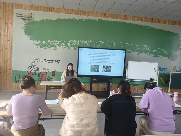 中午,课题组成员相聚会议室,陶莹老师围绕中三班工艺活动的实施情况进行中期汇报,从活动开展历程、幼儿发展表现、现存问题与改进思路等方面进行了全面分享。随后的沙龙研讨环节,课题组成员结合现场观察与汇报内容,围绕“幼儿在活动中的体验方式及拓展方向”、“教师组织形式的亮点与优化策略”两大议题展开热烈讨论。老师们建议从现场活动链接生活、增加多元评价机制来全面追踪幼儿在工艺活动中的体验深度与发展变化,推动幼儿体验学习向更深层次发展。