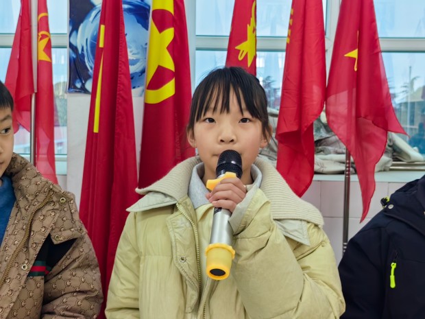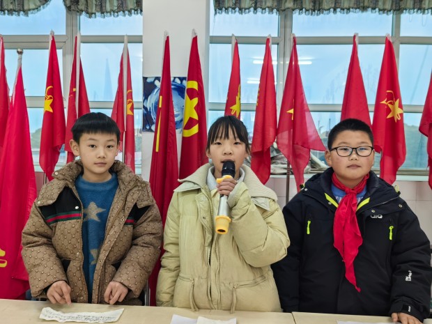 随后,四(1)中队带来了关于成长和大寒的国旗下讲话。