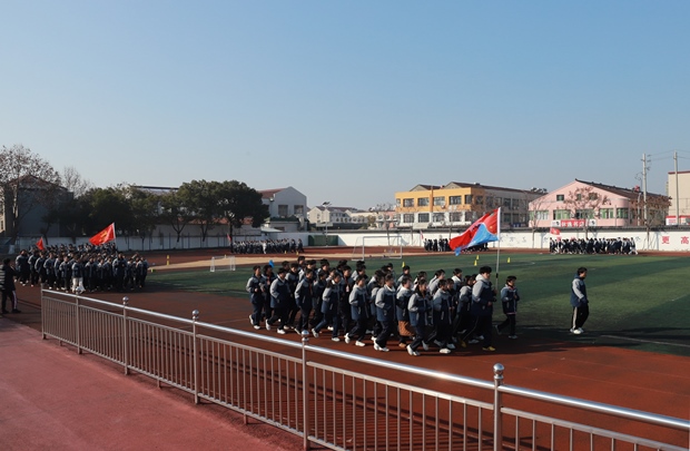 跑操比赛作为首个竞技项目,率先点燃全场氛围。随着清脆的哨声响起,各班参赛方阵依次登场。统一的校服在阳光下格外醒目,同学们身姿挺拔、目光坚定,迈着铿锵有力的步伐向前迈进。嘹亮的口号此起彼伏,穿透校园上空,既彰显着各班的昂扬斗志,也传递着同学们的蓬勃朝气。选手们始终保持着饱满的精神状态,从入场、跑操到退场,全程动作规范、节奏统一,用整齐划一的身影,书写着属于班级的荣光,赢得场边阵阵掌声。